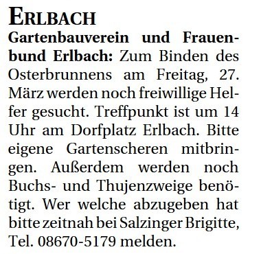 können sich bei Marie-Luise Fritzenwenger (08725/476) anmelden.