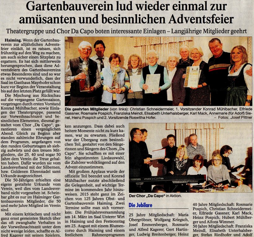 Haiming.Die Adventsfeier des Obst- und Gartenbauvereins fand heuer das erste Mal